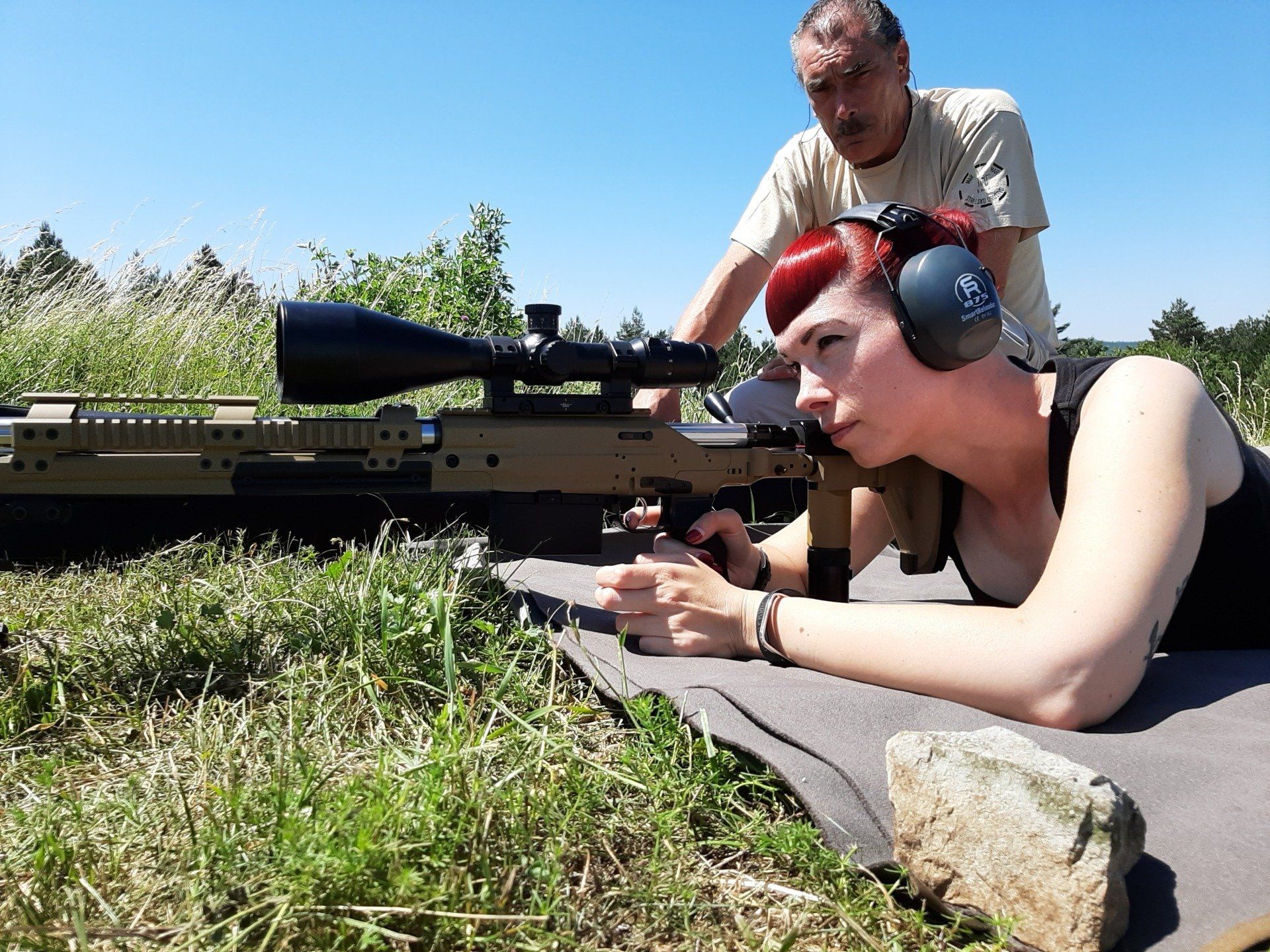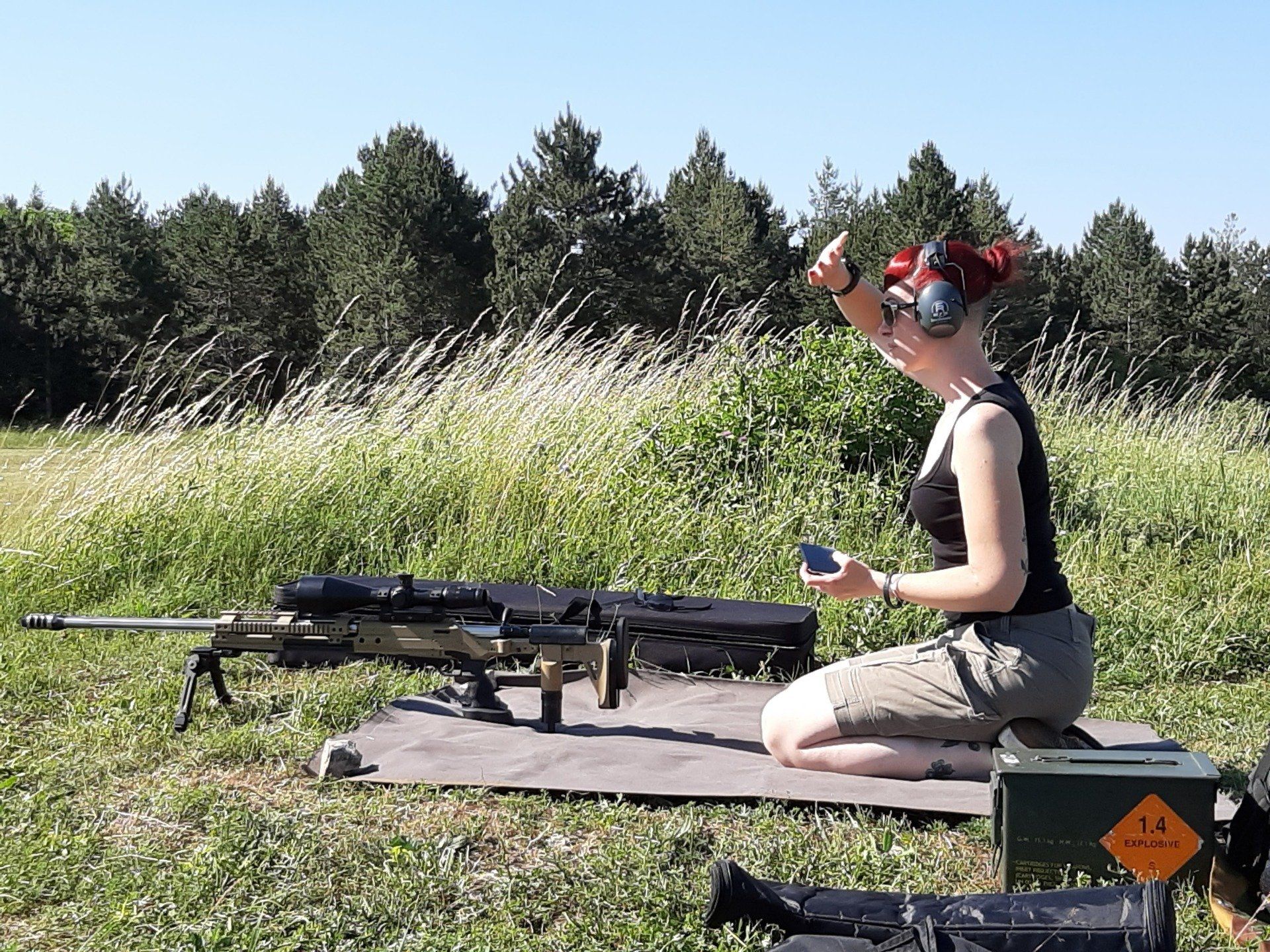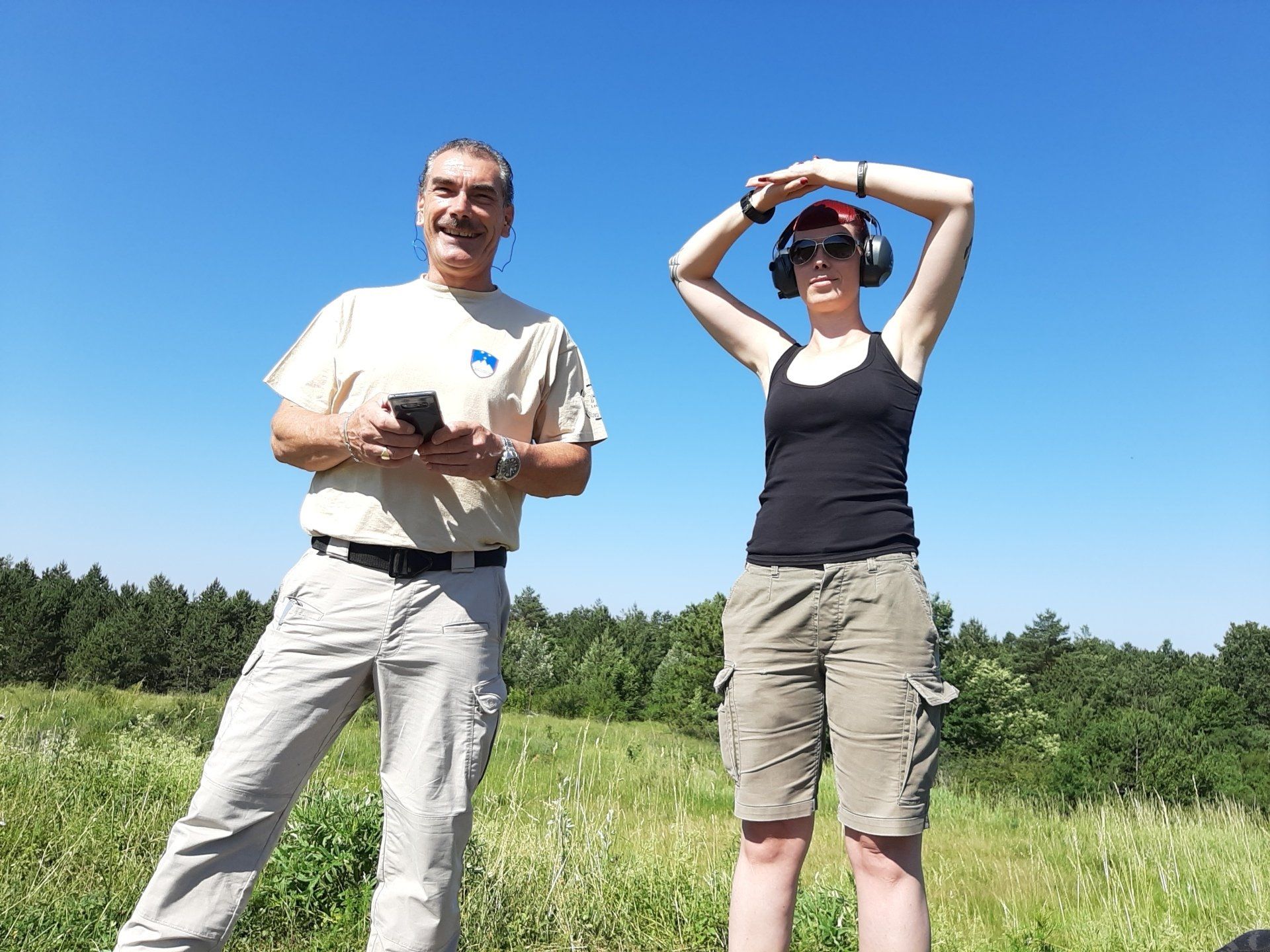 Trening se je pričel ob 9h. Dva sta streljala s kratkocevnim orožjem, ostali z dolgocevnim. Najdaljša razdalja je bila na 1000 m. Vzdušje je bilo prijetno in čas je hitro minil. Kljub zelo visoki temperaturi in močnemu vetru nam je šlo zelo dobro. Malo po eni uri popoldne smo zaključili z našim treningom, pospravili in odšli na osvežitev.